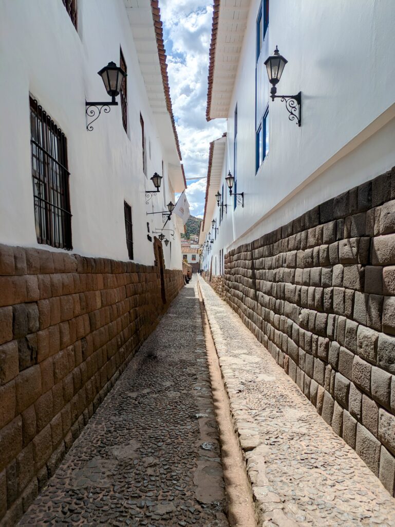 La ruta continúa hacia el barrio de San Blas, el barrio de los artesanos, con sus calles empedradas, talleres de arte y un ambiente bohemio que invita a detenerse. Desde el Mirador de San Blas se obtienen vistas espectaculares de la ciudad, un lugar perfecto para contemplar Cusco desde lo alto. Antes de terminar el día, vale la pena caminar por la pintoresca calle 7 Borreguitos y descubrir el Acueducto de Sapantiana, un rincón poco conocido que conecta con la historia colonial de la ciudad. La jornada se puede cerrar disfrutando del atardecer en alguno de los bares cercanos al mirador de San Blas, donde la vista se mezcla con la calma de la noche cusqueña.