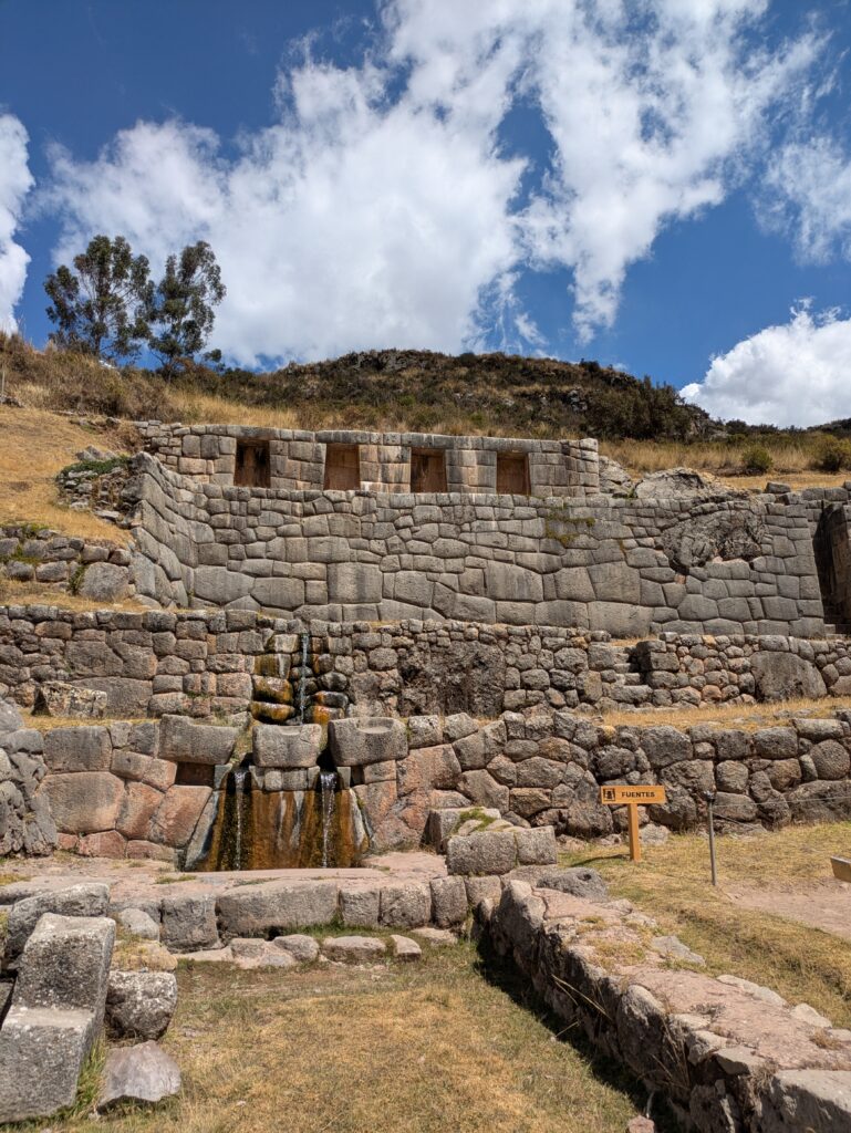 El segundo día está dedicado a los alrededores y a seguir explorando los tesoros históricos de Cusco. La primera parada es Qenqo, un centro ceremonial inca rodeado de formaciones rocosas labradas, seguido por Sacsayhuamán, una de las fortalezas más impresionantes del mundo andino, con sus gigantescos muros de piedra perfectamente ensamblados. Después, el recorrido continúa hacia Puka Pukara, conocida como la “fortaleza roja” por el tono de sus piedras, y Tambomachay, el templo del agua, con sus fuentes y canales que aún fluyen.