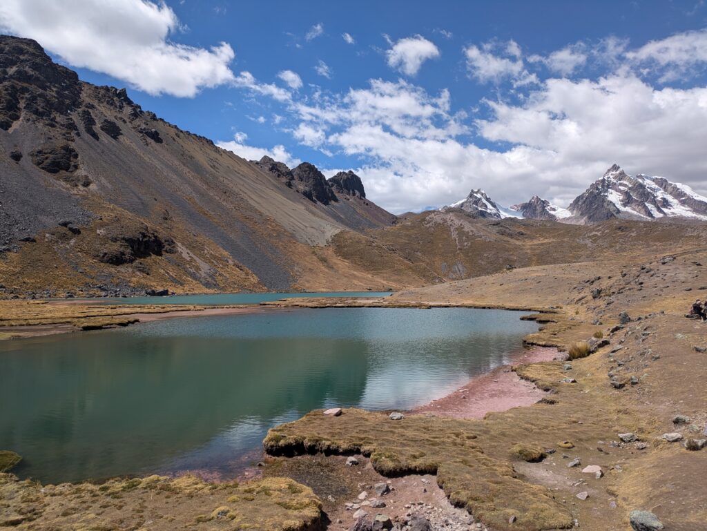 Lago Rocotuyoc: Uno de los destinos que poco a poco gana popularidad es el Lago Rocotuyoc, ubicado en la provincia de Huari. El camino hacia esta laguna combina la majestuosidad de la alta montaña con el verdor de los valles. Sus aguas tranquilas, de un azul sereno, reflejan las montañas circundantes y ofrecen un entorno ideal para relajarse después de una caminata. A diferencia de las rutas más conocidas, aquí se siente una mayor conexión con la naturaleza, sin las multitudes que hay en otros lugares. Es una joya escondida que sorprende a todo aquel que se anima a descubrirla. Además, muy cerca de aquí se encuentra la Laguna Congelada. Sin embargo, al igual que el Glaciar Pastoruri se observa un importante retroceso del hielo y ya sólo quedan congeladas unas pequeñas partes de la laguna, evidenciando el cambio climático y cómo afecta a la cordillera andina.
