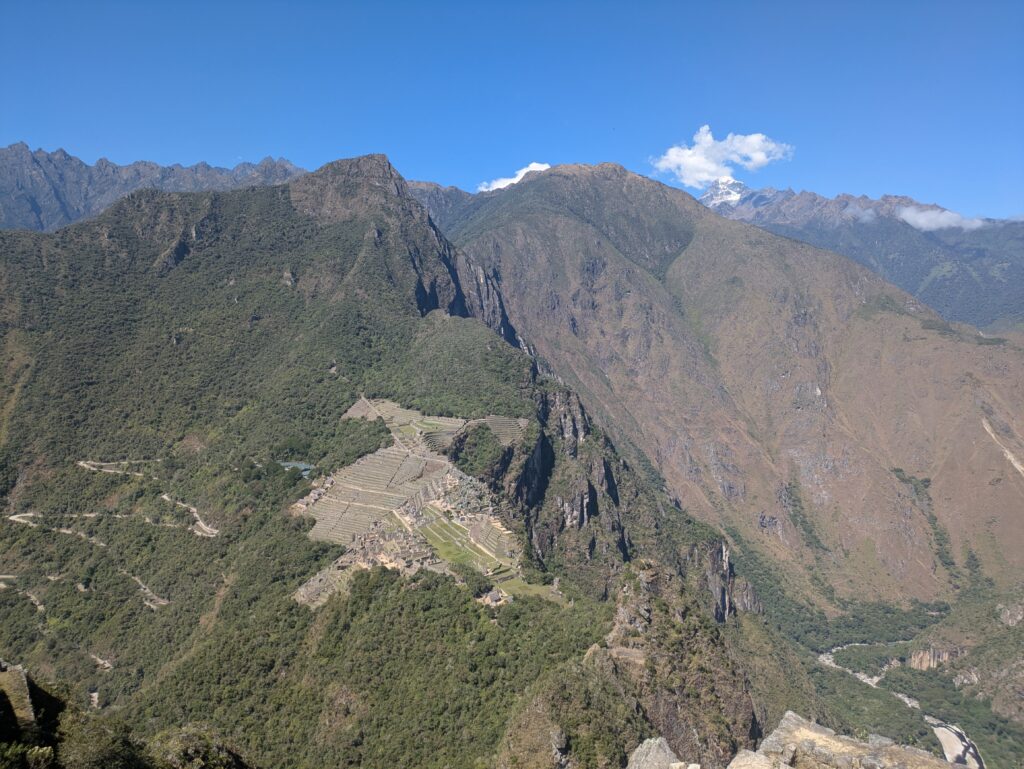 Para los más aventureros y si estás en buena forma, la experiencia puede continuar con la subida al Waynapicchu, la montaña que aparece al fondo en la clásica foto de Machu Picchu. El ascenso es bastante exigente, con caminos empinados y escalones tallados en la roca, pero la recompensa es increíble. Desde la cima se contempla una panorámica espectacular de la ciudadela y el valle del río Urubamba serpenteando a sus pies. ¡Sin duda el esfuerzo habrá merecido la pena! La subida puede ser de entre hora y media a dos horas y media, asique tómatelo con calma.