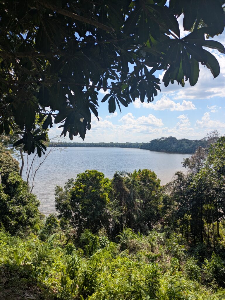 Para el segundo día y tras un desayuno temprano, te dirigirás hacia uno de los lugares más impresionantes de la reserva: el Lago Sandoval. Para llegar allí realizarás una caminata por senderos selváticos, rodeado de árboles gigantes y, con un poco de suerte, de monos aulladores o ardillas curiosas que se cruzan en tu camino. Una vez en el lago, navegarás en una canoa silenciosa que se desliza suavemente sobre sus aguas oscuras, espejo perfecto del cielo y de la vegetación que lo rodea. El Lago Sandoval es hábitat de especies extraordinarias: caimanes negros, nutrias gigantes de río, tortugas, garzas y, por supuesto, cientos de aves tropicales que llenan el ambiente de vida.